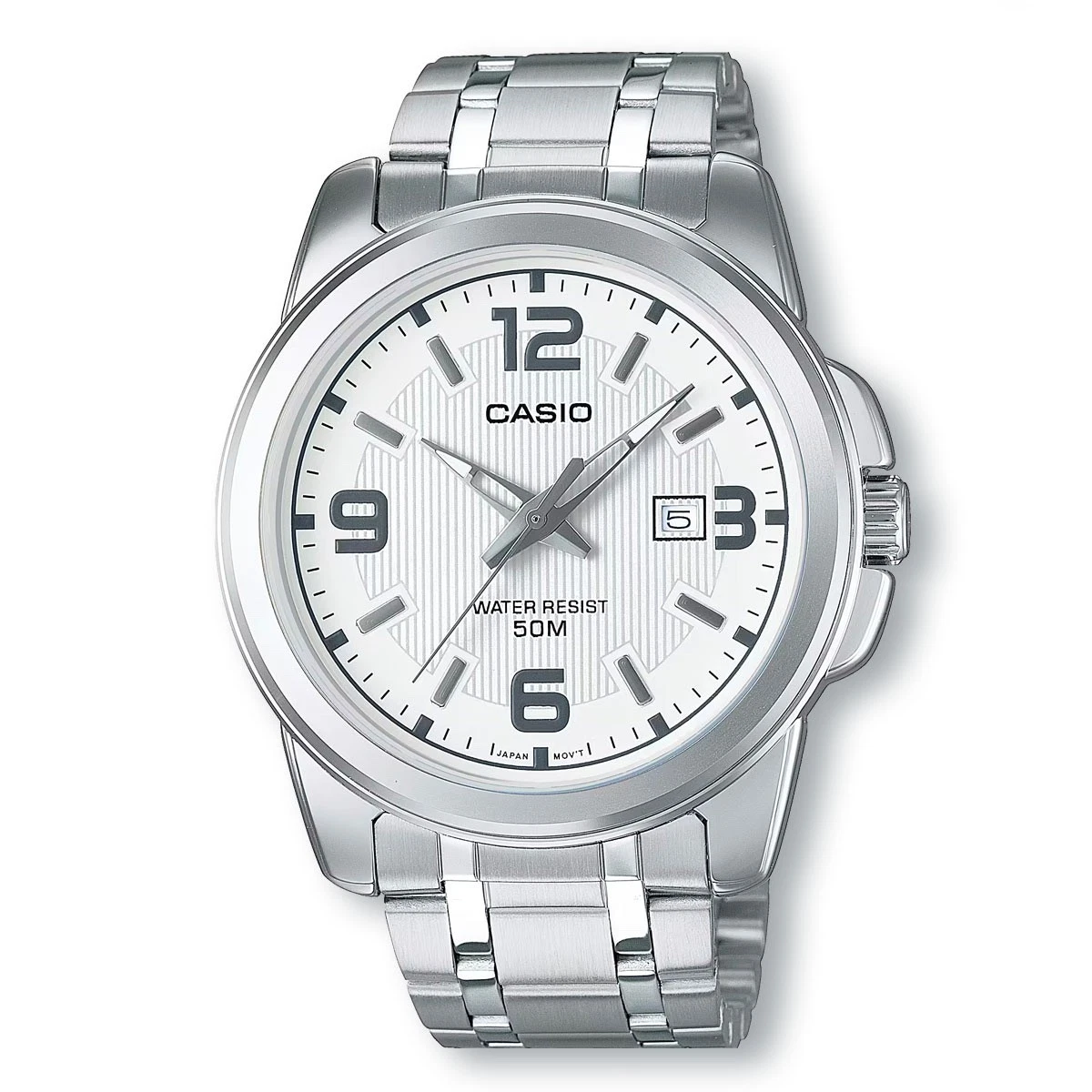 Reloj CASIO MTP1314D-7A fácil de leer de acero inoxidable, esfera blanca